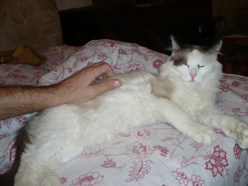 Была проведена обработка от всех паразитов, котик отъелся, похорошел, а когда стало возможно, то была