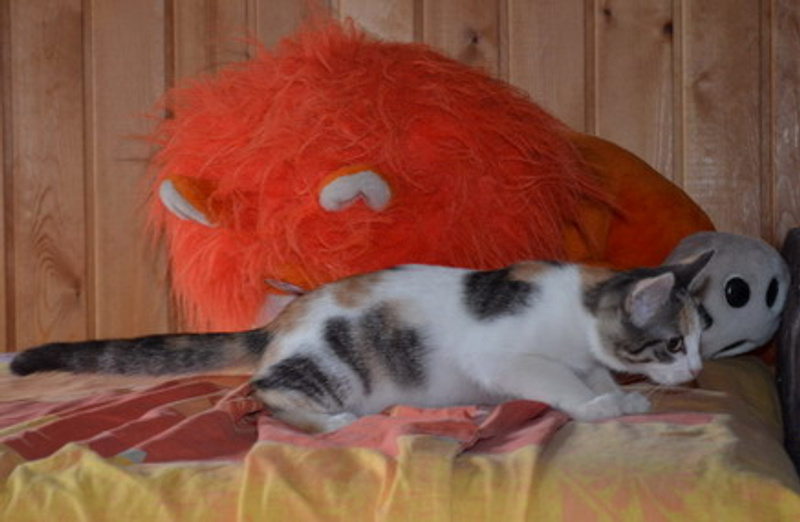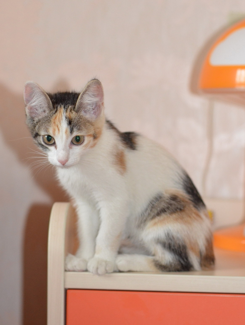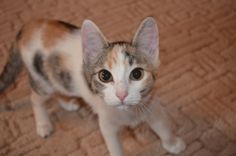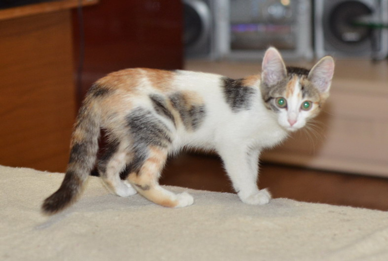 Трехцветная маленькая кошечка- к счастью в доме.