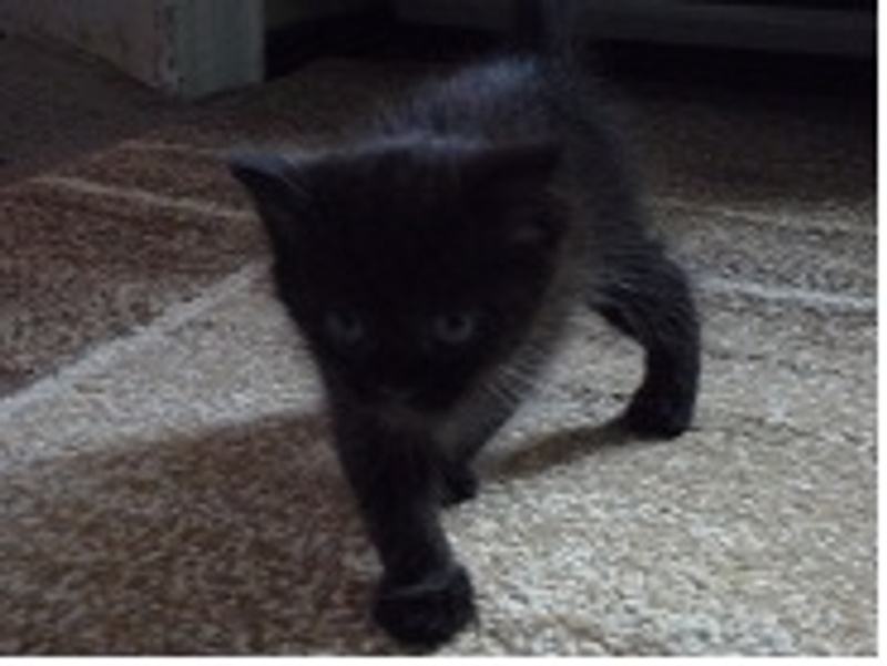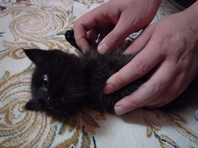 Здравствуйте! Отдадим в хорошие руки тёмного (почти чёрного), пушистого котёночка, мальчик. Такой игривый и забавный, ему сейчас 1,5 месяца, любознательный и смышлёный.