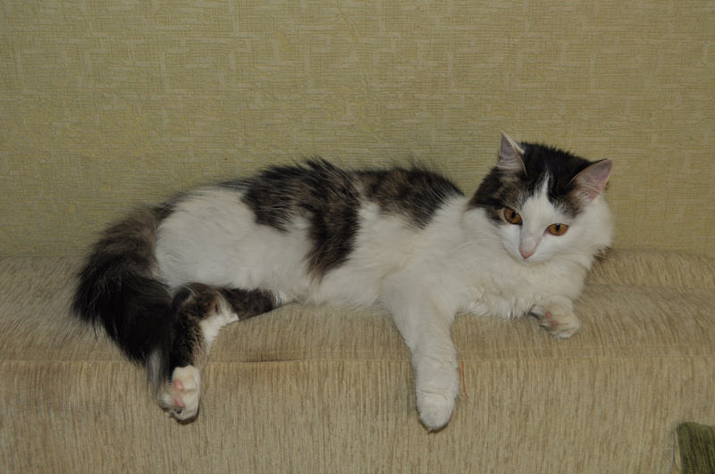 Киса спокойная, ласковая, не навязчивая, тоненькая, настоящая девочка. С другими кошками не конфликтует.