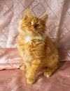 Примерный возраст 3,5 месяца. По характеру котишка очень ласковый, контактный, спокойный. Любит разговаривать, ему что-то говоришь, он отвечает. Это надо видеть, очень забавно.
