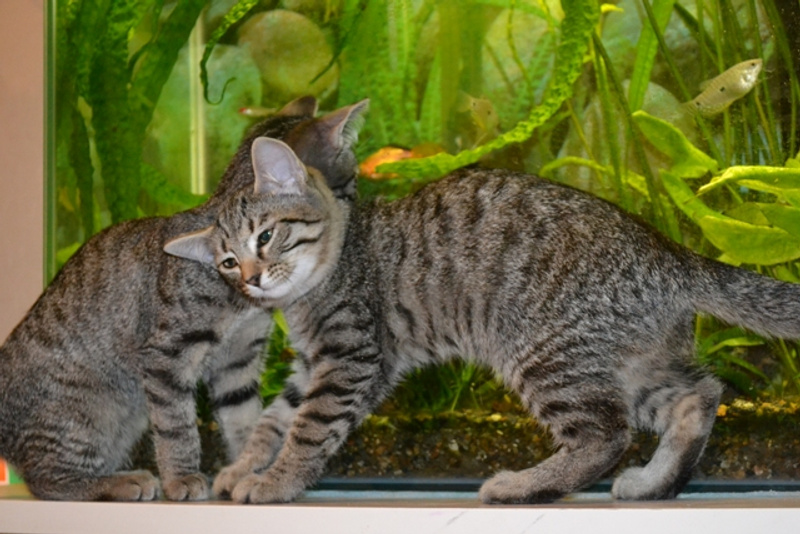 Все малыши прекрасно уживаются с другими животными, чёрно-белая девчушка ладит даже с ребёнком.