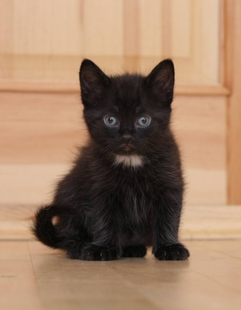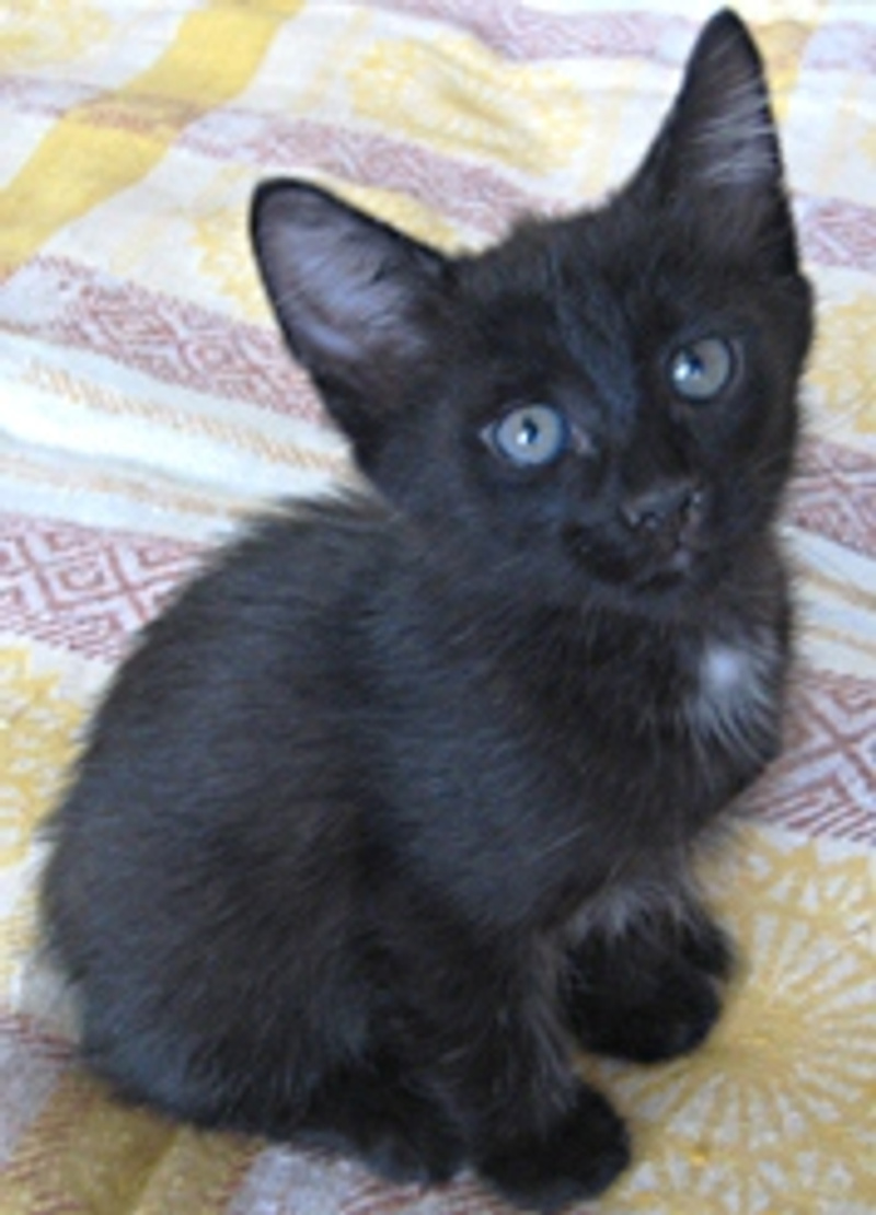 Черная, с делой грудкой и белым сердечком на пузике.