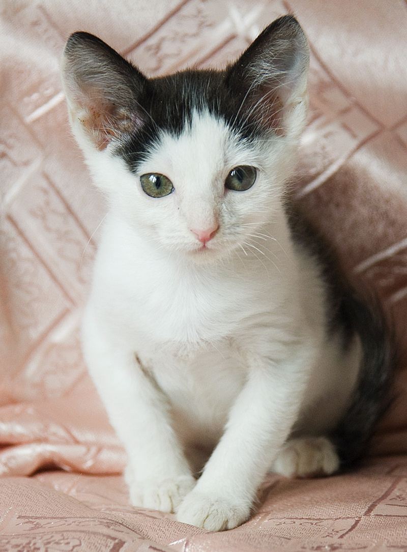 Малышке около 2,5 месяцев. Скромная и воспитанная, игривая и ласковая, это всё про неё. Приучена к лотку с наполнителем.