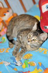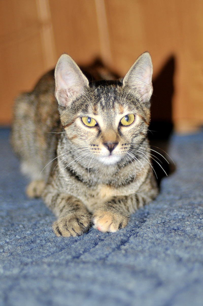 Игривая и весёлая попрыгушка, как все ребятишки, но в тоже время нежный и трепетный котёнок. Очень интересный у Ляли окрас- пёстренькая трёхцветочка. По мере того, как Ляля растёт, рыжие пятнышки на её шубке становятся ярче и заметнее.