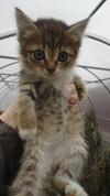 Котятам предположительно месяца полтора - два, бедные животные, они не ели, передвигались еле-еле по коробке...не знали, что такое молочко и корм...