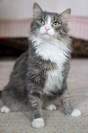 Котику 1-1,5 года. Он здоровый. Проглистогонен, кастрирован. Ходит только на горшок. Очень ласковый.
