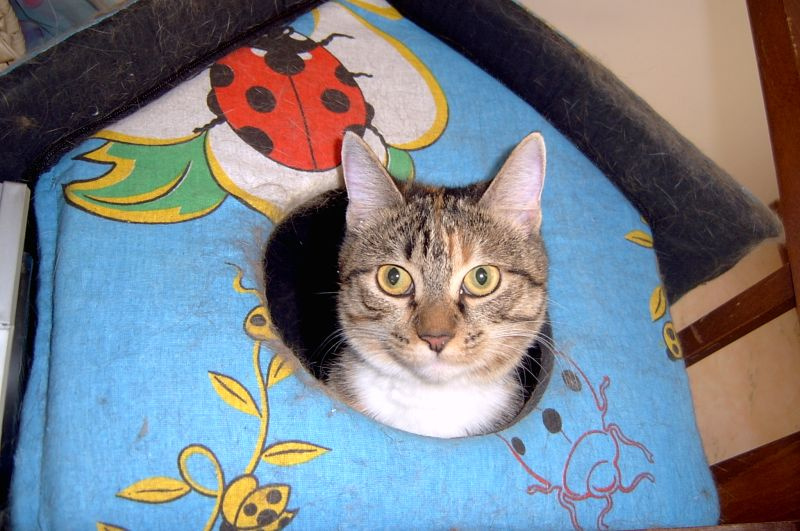 Бусинка стерилизована, привита, имеет ветпаспорт и справку ветеринара о здоровье. Отдается единственным ребенком в семью, потому что имеет очень шустрый характер и задатки лидера. Доктор сказал, что ей 1,5 года. Записали день рождения 8 марта 2011 года.