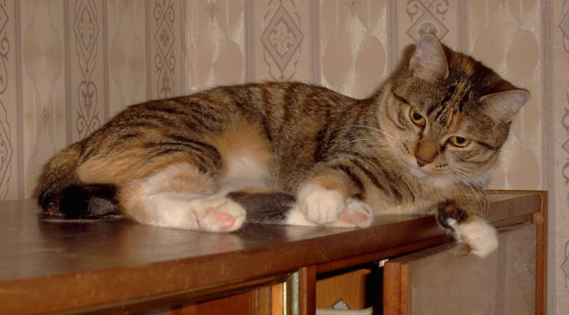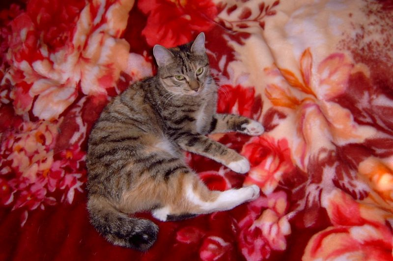 Маленькая Бусинка много пережила, от нее отказались прежние хозяева из-за рождения ребенка, а человек, который ее потом взял, решил посмотреть, кто сильнее - кошка или ее пес. Девочка очень храбро защищалась, но поняла, что все кругом - плохие люди. Ее забрал добрый человек по имени Зоя, теперь она живет в хорошем доме, но пришлось долго объяснять ей, что люди и животные вокруг не ее враги. Когда делали прививки, то ветеринар спросил, какую породу записывать в ветпаспорт - у Бусинки залом на хвосте и хвостик у нее вполовину короче, со смешной шишечкой на конце. Решили, что бобтейл)))