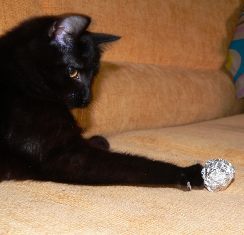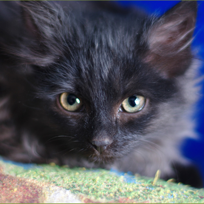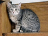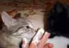 Серебристая Крошка. Поймалась самой первой, с человеком на короткой ноге, очень ласковая, уже тянет лапки при встрече, охотно играет. Иногда может вспомнить былое и пришипнуть, но чтобы кусаться или оцарапать, это уже нет.