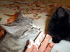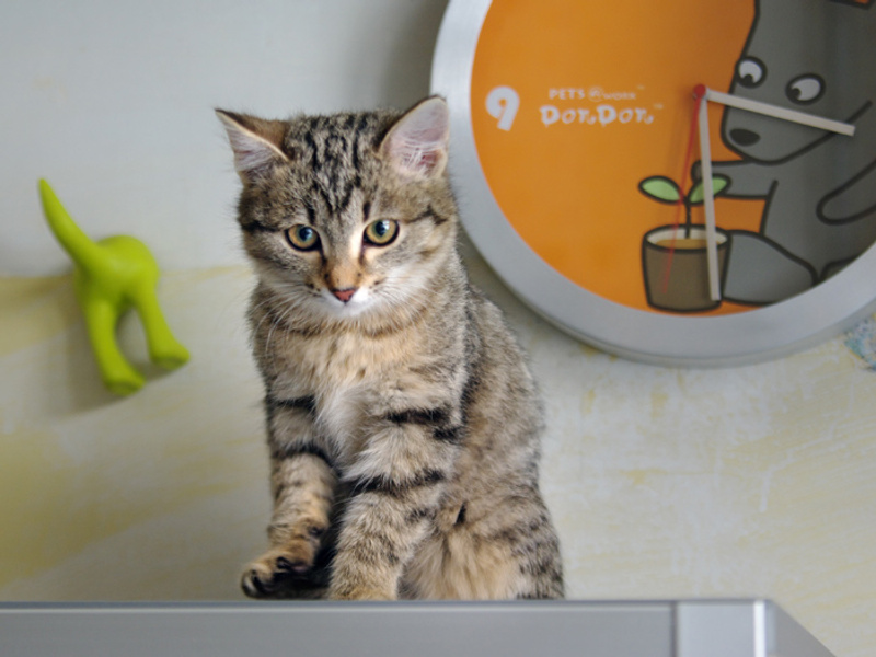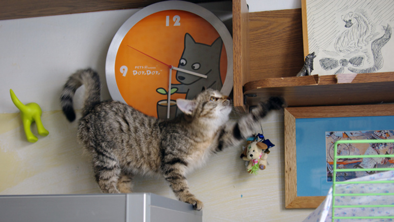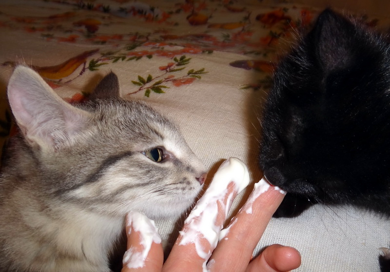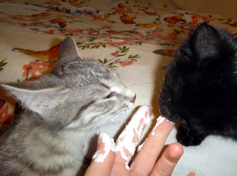 Адаптация идет в нужном направлении: человек уже не самое страшное существо, освоены некоторые игры (веревочка, мячи, игрушечные мыши).