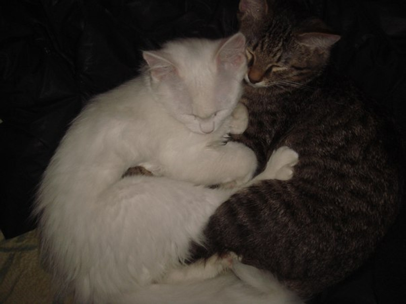 Белая кошка полупушистая. Разные глаза. Не глухая.