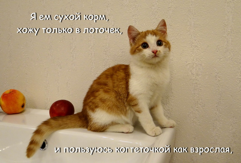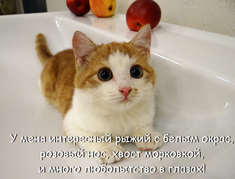 маму-хозяйку!Имеет рыжий с белым окрас, хвост морковкой, розовый нос