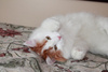 С играми у него нет никаких проблем – по активности можно сравнить с обезьянкой. Он будет играть с человеком, другими кошками, с адекватными собаками. При этом любит, чтобы игра шла по его правилам – очень быстро влился компанию аборигенных кошек и завоевал себе там авторитет.