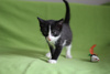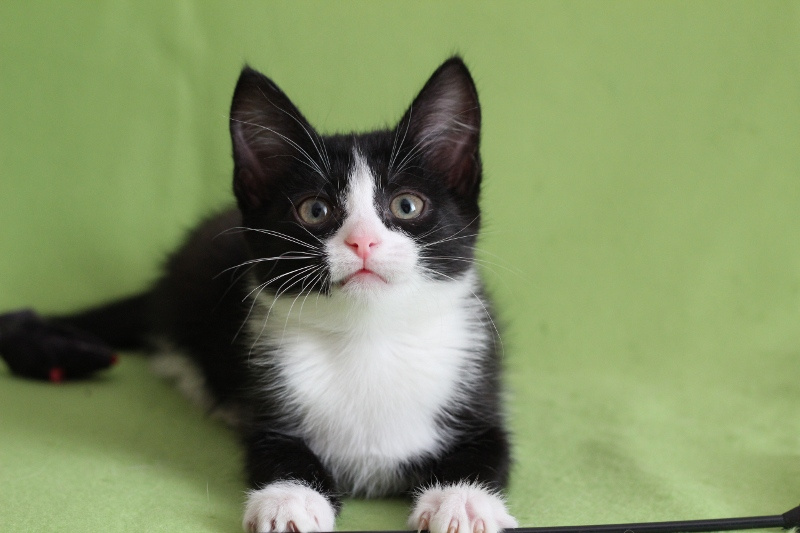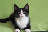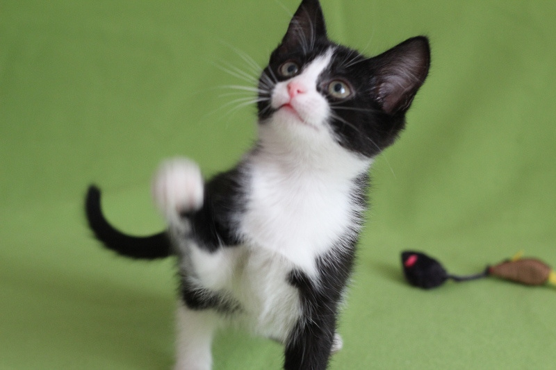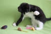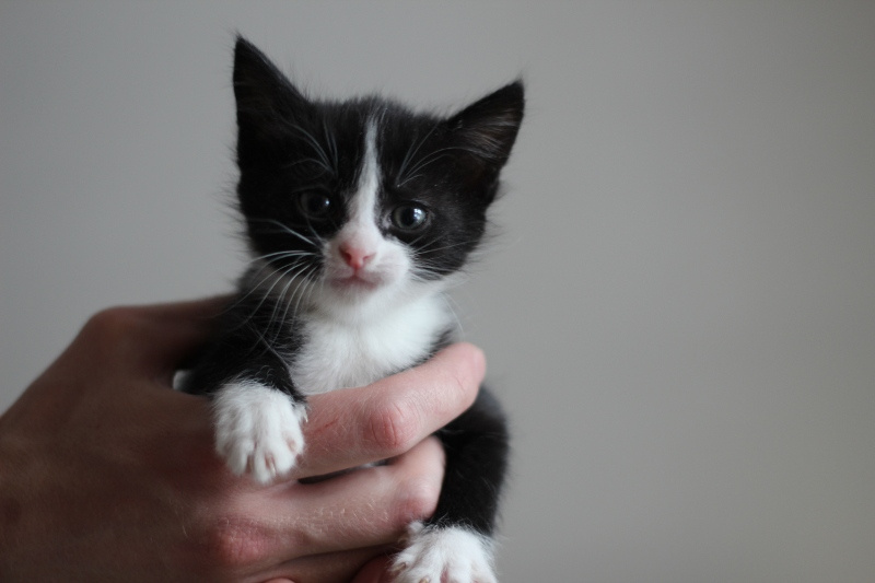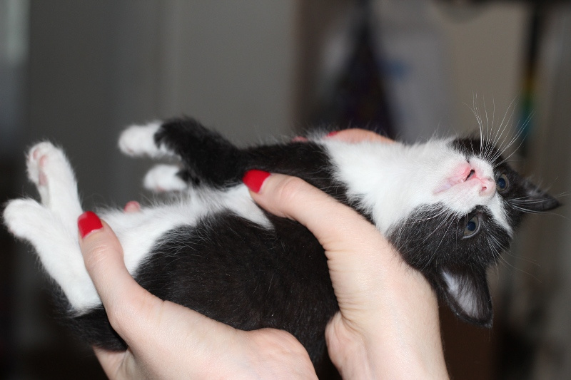 Одним словом, ребенок, маленький беззащитный кошачий ребенок.Девочка очень красивая. Симметричный нарядная шубка. Белоснежные лапки, грудка, мордочка и контрастный черный фон. В общем, чего там говорить, это нужно видеть и любить (или не любить) такой окрас. Лично я его очень люблю!