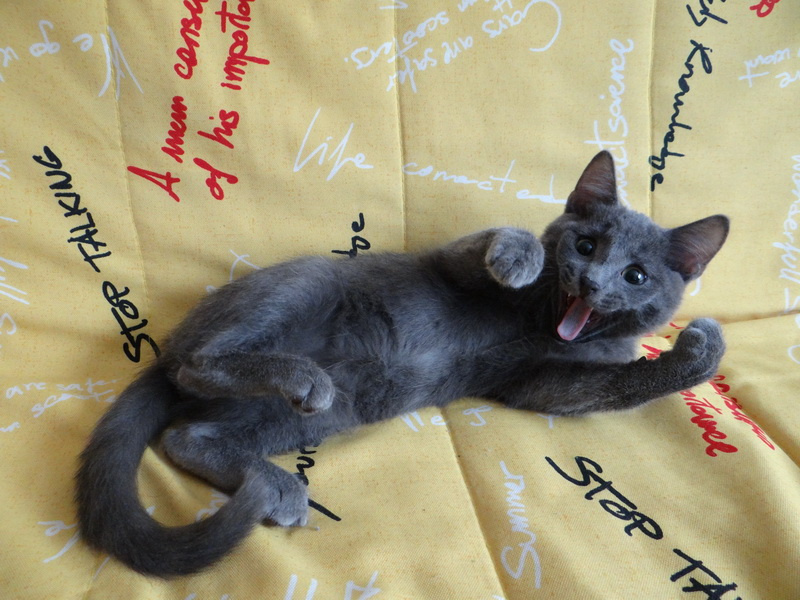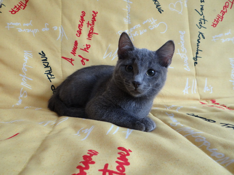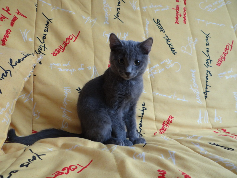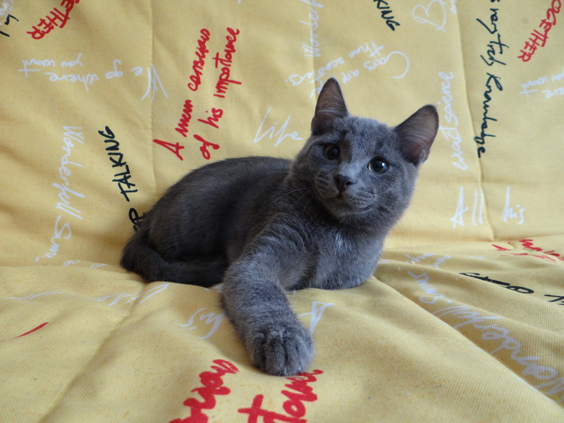 , возрастом примерно 5 месяцев, с жёлто-зелёными глазами и симпатичными круглыми щёчками.По характеру спокойный, но как все малыши любопытный.