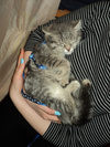 Надеемся встретить хозяина, который не захочет ждать полного приручения котенка, а полюбит таким маленьким комочком, пусть и не очень общительным. В свою очередь, в атмосфере любви и заботы, Анфиса гарантирует стать ласковой и нежной кошкой.