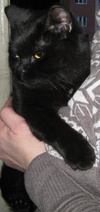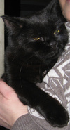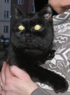 У кошечки черная блестящая шерсть, красивая округлая голова и ярко-желтые глаза. Все, кто ее видят, буквально хором говорят: "какая красавица!". Киса явно чья-то потеряшка, поскольку доверчива к людям. Характер ласковый и спокойный. Последнее время жила в подвале жилого дома. Стерилизована.
