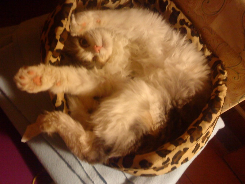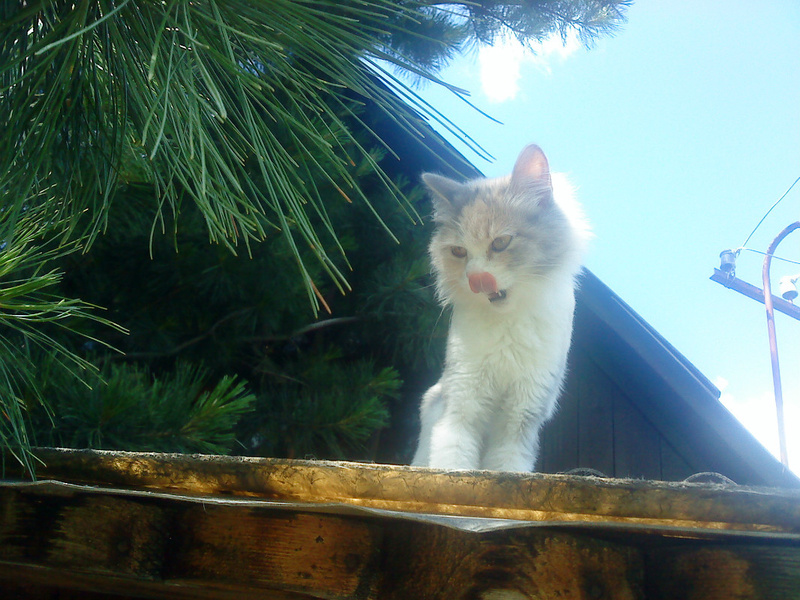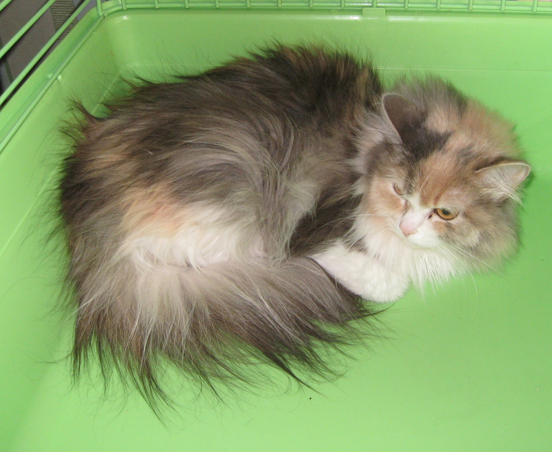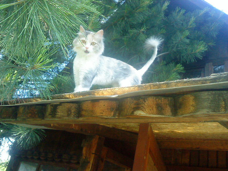 Киса боится чужих людей - сразу съеживается и закрывается хвостом. Даже сфотографировать толком невозможно.