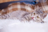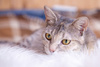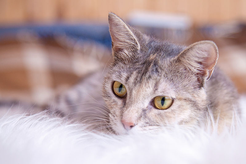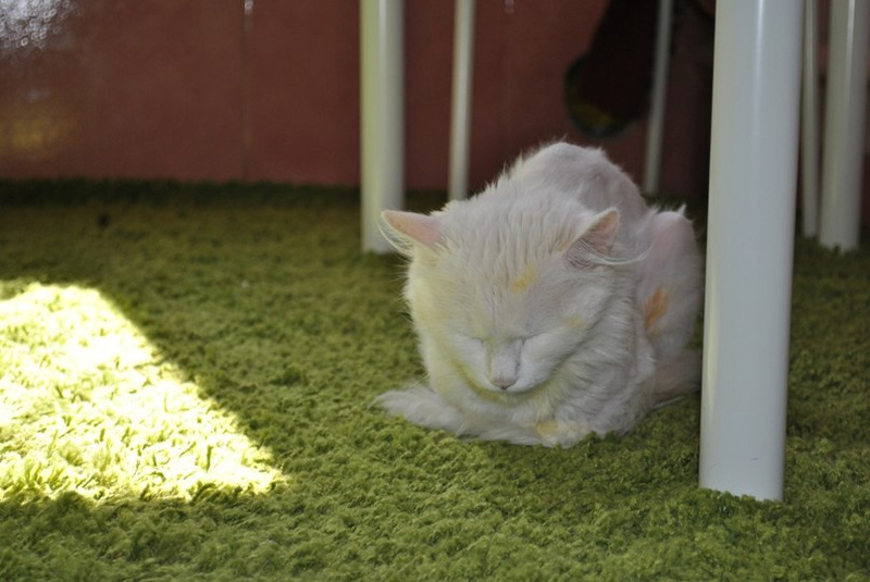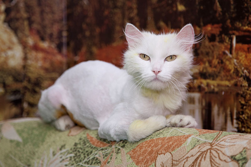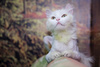 Белка воспитанная кошка, никаких проблем с лотком, стерилизована, ей приблизительно два года. Сейчас не видно, но кошка белая и пушистая.
