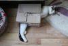 Малышам примерно 1,5-2 месяца, кушают пока влажник, но мы стараемся приучить к сушке их. Горшочек освоили, проглистогонены и уже поставили первую прививку. Любят спать под боком и мурчать. Как все детки любят покушать, поиграть, пошалить, побегать и конечно же поспать.