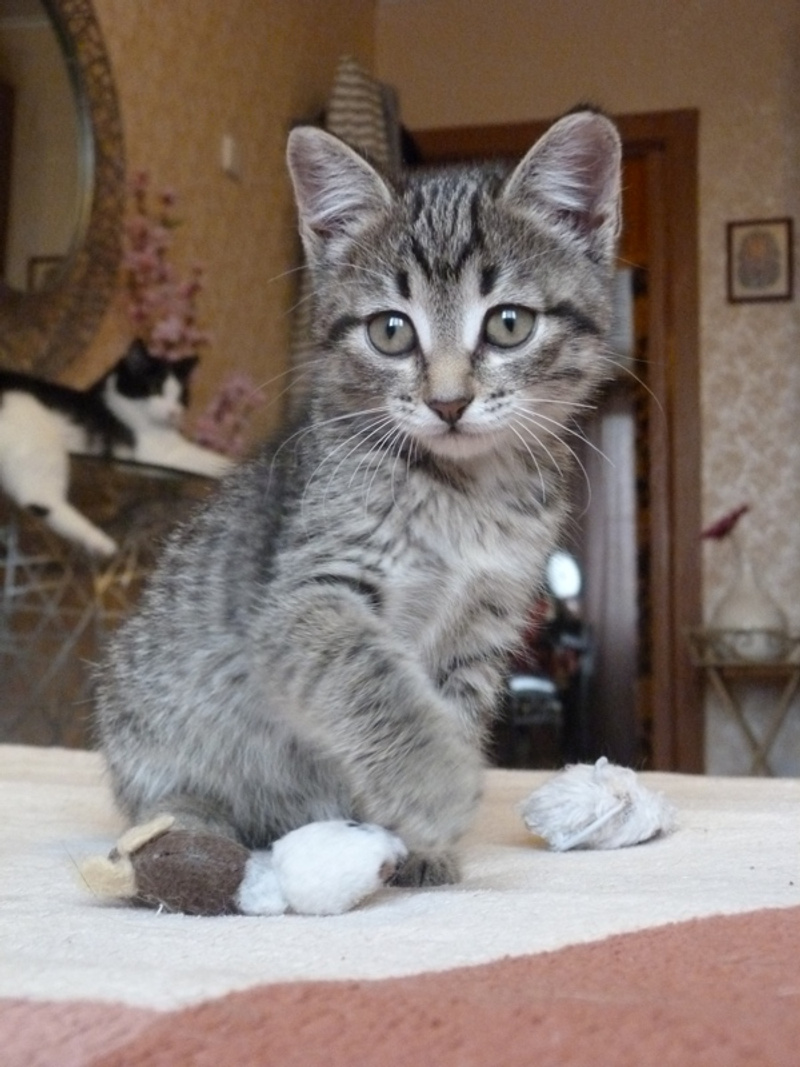 Майя очень общительная, очень ласковая, безумно разговорчивая, мурррчательная и ласкательная девочка. Ей 1,5 месяца, кушает сухой корм, лоточек освоила сразу. Любит спать рядышком, бодаться и мурчать при этом.