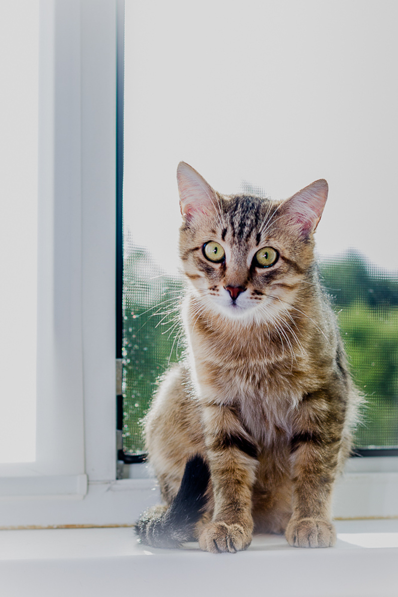С удовольствием наблюдает за природой и птичками из окна, с людьми ласков и общителен