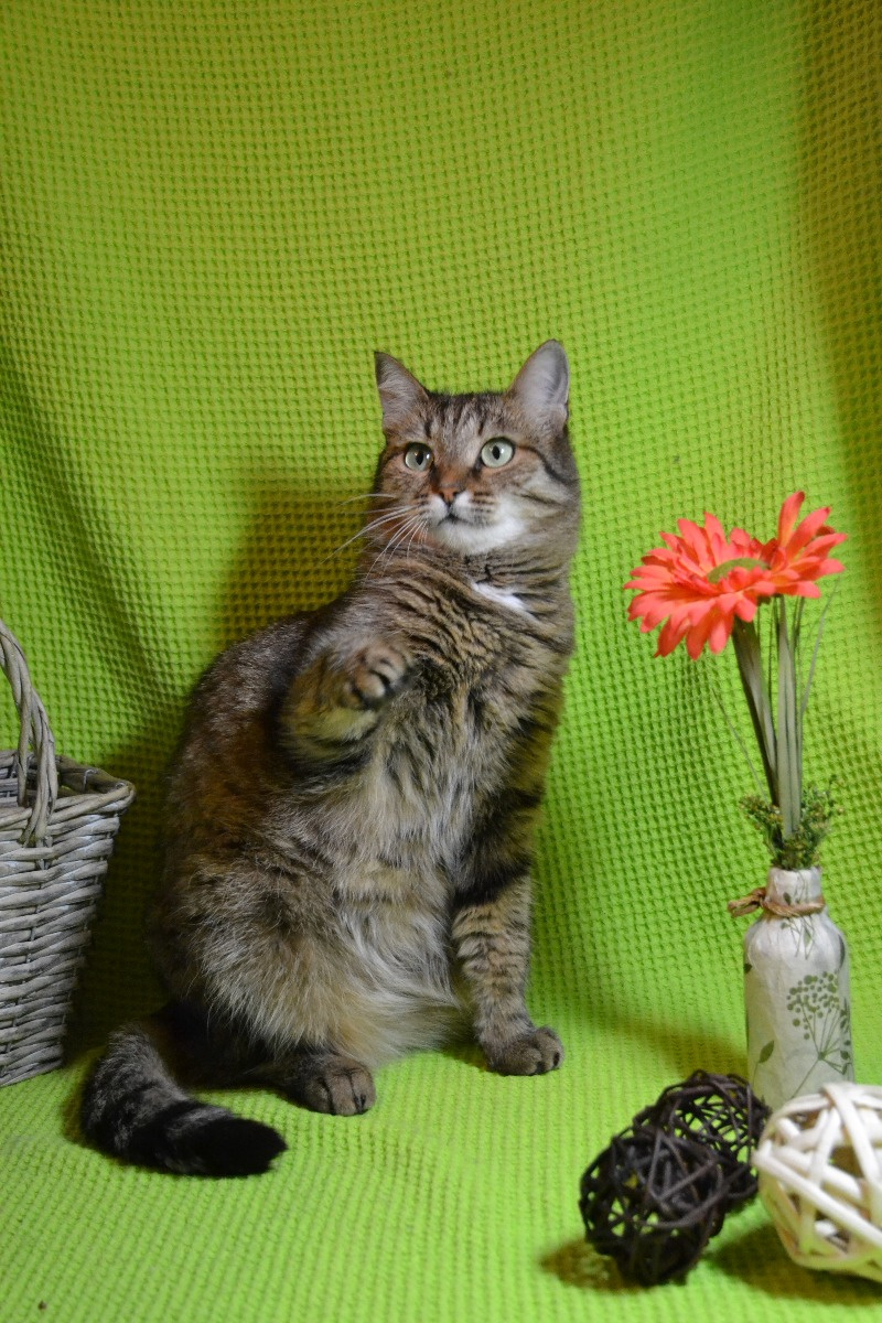 Стерилизована, приучена к лотку, привита комплексной вакциной, имеет ветпаспорт, кушает сухой корм специальной линейки.