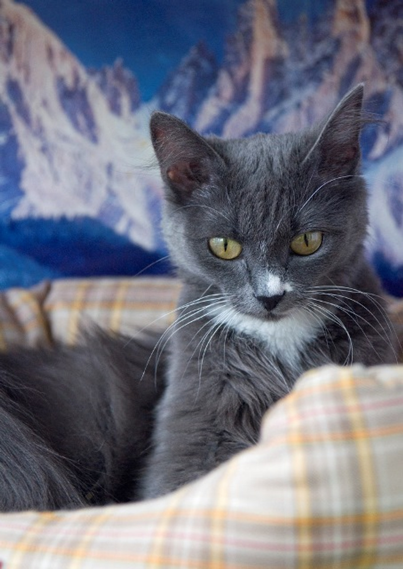 Как все детки мила, игрива, трогательно беззащитна. Необычно раскрасила её природа – шикарная голубая шубка с пушистым хвостиком, белые балеточки на лапках и забавная белая отметинка на носике, словно кисточкой мазнули.