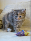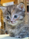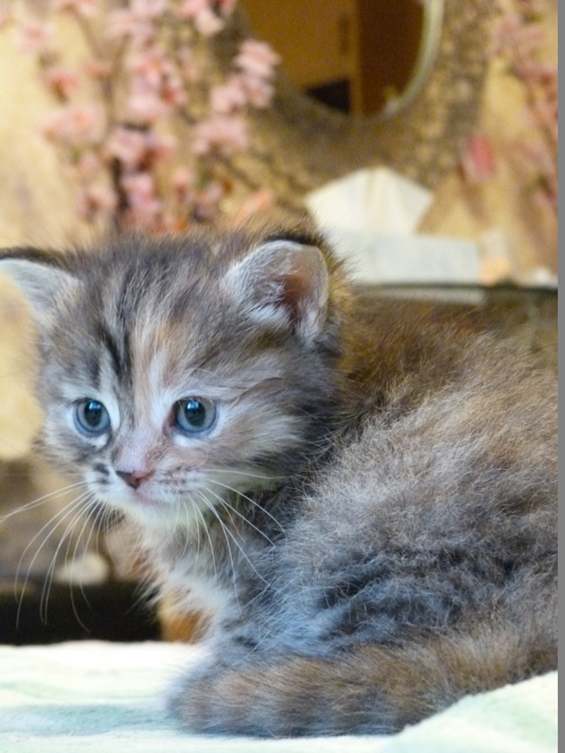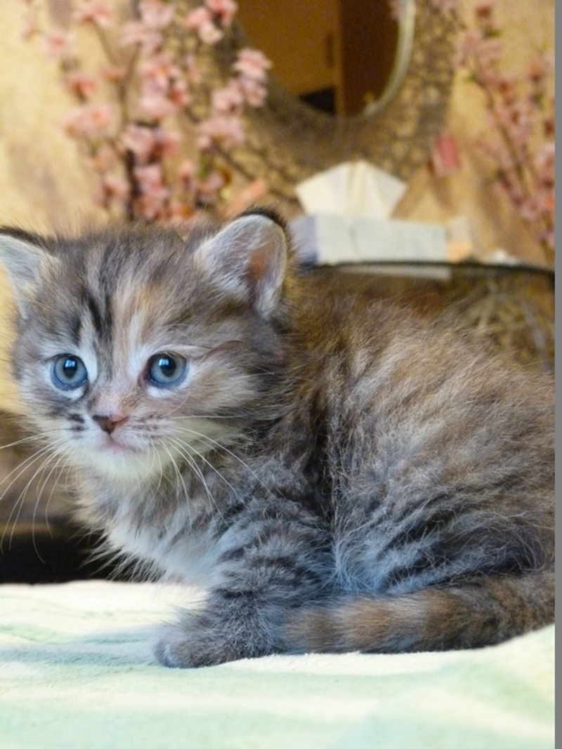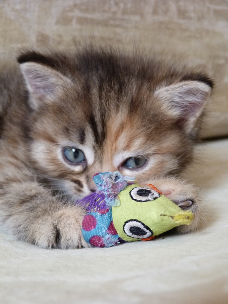 О себе: 3,5 недели, очень маленькая, смешная, нежная, спокойная девочка. Кушает пока заменитель молока и паштетики для малышей. Лоточек уже начали изучать и закреплять. В целом очень позитивный ребенок, спит, лопает, играет. Маленький колобок.
