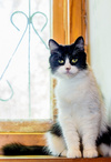 Стерилизована, приучена к лотку. Кушает сухой корм премиум-класса.