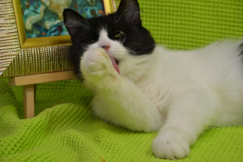 Очень чистоплотная и милая кошечка.