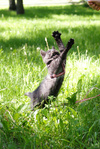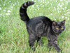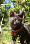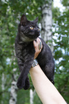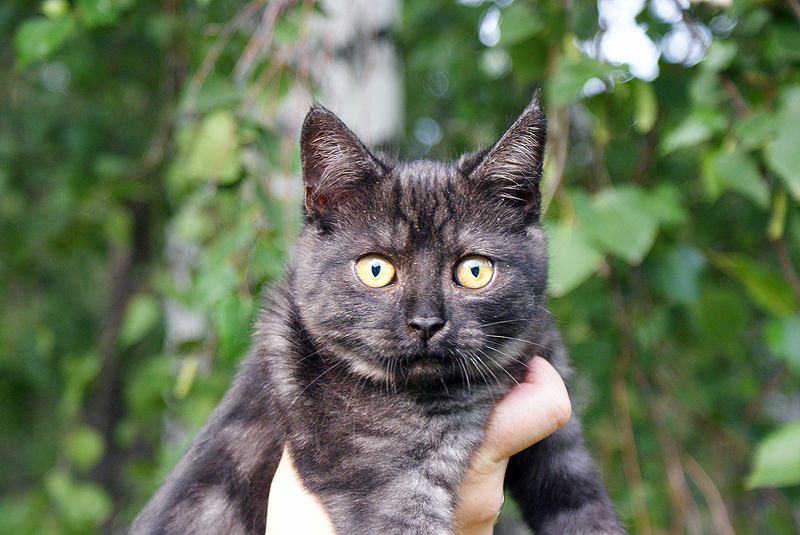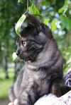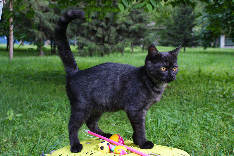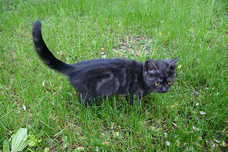. Еще бы, такой величественный и страшный зверь перед ними, в необычной шубке, с боевой раскраской. А если серьезно, то вырастет Артурчик в большого и шикарного котяру, с великолепным окрасом черный дым (мраморный рисунок со временем исчезнет), с апельсинового цвета глазами и совершенно безупречным нравом. Питается профкормами, лоток должен быть с наполнителем. Игручий и прыгучий ребенок, поэтому море игрушек и хозяева -аниматоры приветствуются.