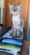 Шейлочка очень умная девочка, она знает что ей можно, а что нельзя, она отлично знает горшок, ходит как в пустой так и в наполнитель. Кушает сухой корм и влажный. Пока не играет, пока у нее другие заботы, но совсем скоро Шейла будет стерилизована, она успокоится, и вспомнит, для чего ей предлагают мячики и бантики.