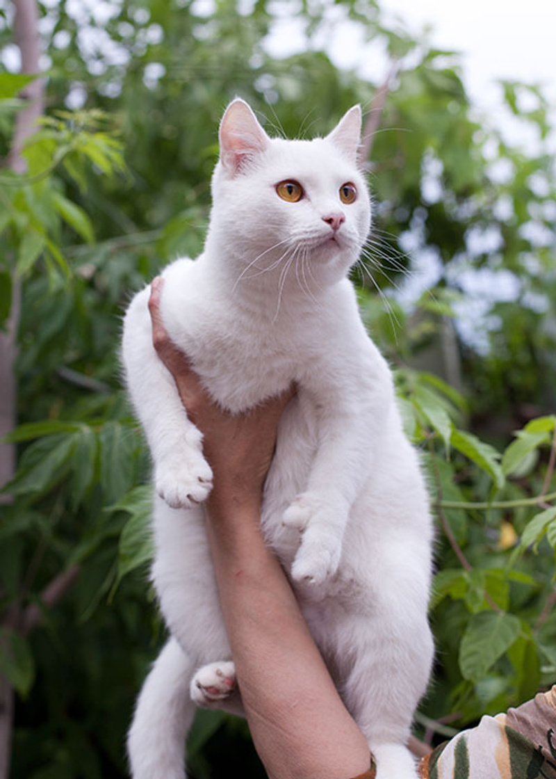Красивый белый кот в добры руки. Крупный, холёной, с плюшевой шерсткой. У него очень не обычная левая лапка. Ему год, котик ласковый, спокойный. Кастрирован, к лотку приучен.