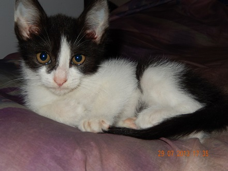 Сегодня мне под колеса выбежал маленький котенок. Сразу был забран с улицы и осмотрен у ветеринара. Малыш оказался спокойным, любознательным и очень ласковым мальчиком. Цвет черный с белым. Решила назвать его Каспер.:) Котя оказался пыльным и с клещиком в ушках. Я его вымыла и ушки прокапала. Но, как всегда бывает одно большое НО..(( Мои коты его не принимают.. В связи с этим обстоятельством Каспер СРОЧНО ищет маму и папу!!!:)) Малыш кушает сам проф корм и уже знает лоточек!!:)) Очень милый малый:)) Отдается с приданным в виде лоточка, мисочек и когтеточки. По договору и возможностью интересоваться его дальнейшей судьбой. Только в квартиру!!:)) 91345555 семь ноль Надежда