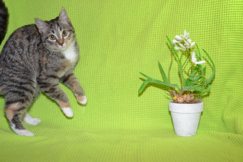 Игривая, непоседливая кисонька. Очень любит ласку, моментально отвечает мурлыканьем и обнимашками за шею.