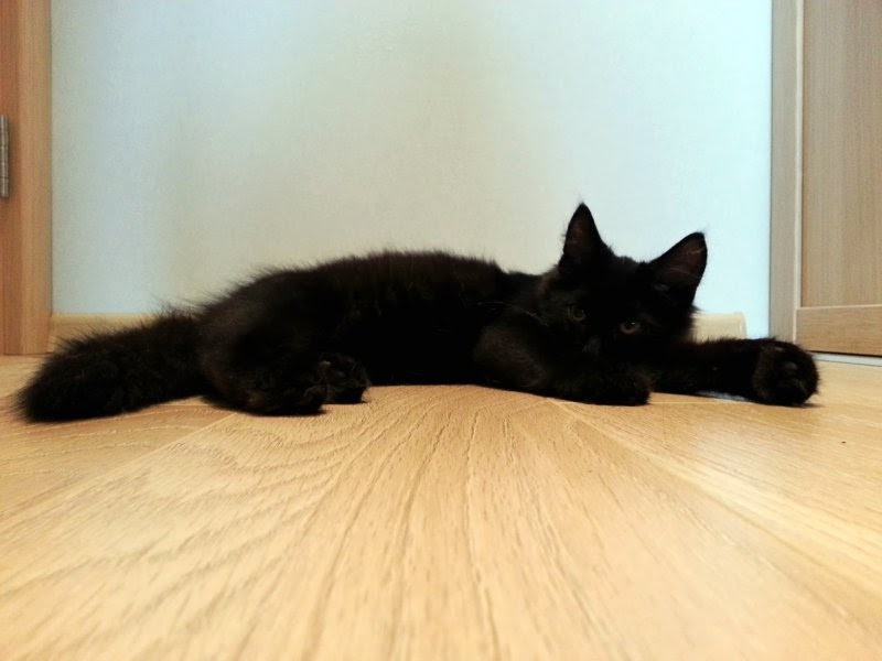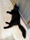 Абсолютно чёрный, очень красивый, пушистый и мягкий котёнок ищет хозяина и дом. Вырастет статным красавцем(уже в 3 месяца выглядит крупным при весе около 2кг.) Здоров, в еде не привередлив, с лотком проблем не имеет. Добродушен, игрив и очень общителен, стремится всегда находиться рядом с людьми. Любит "обнимашки" и поесть, станет отличным другом.