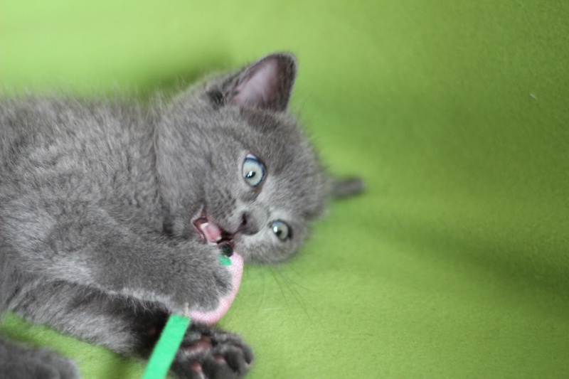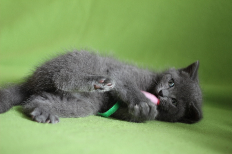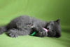 Возраст около 1,5-2 месяцев. Ровный голубой окрас и густая набитая шубка.