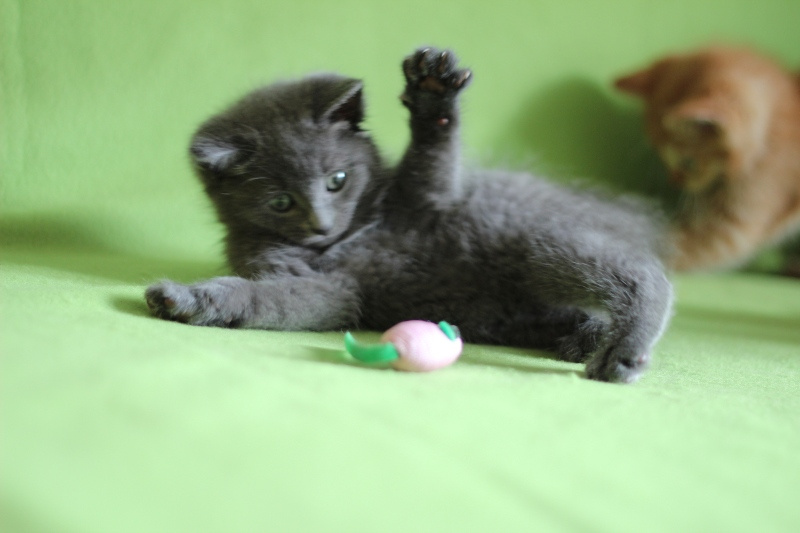 Девочка нежная, ласковая к людям и, конечно, как все котята в этом возрасте подвижна, любопытна, с бесконечным интересом ко всему вокруг.