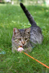 , втягивает их в свои активные игры ))). Очень подвижный, очень прыгучий.
