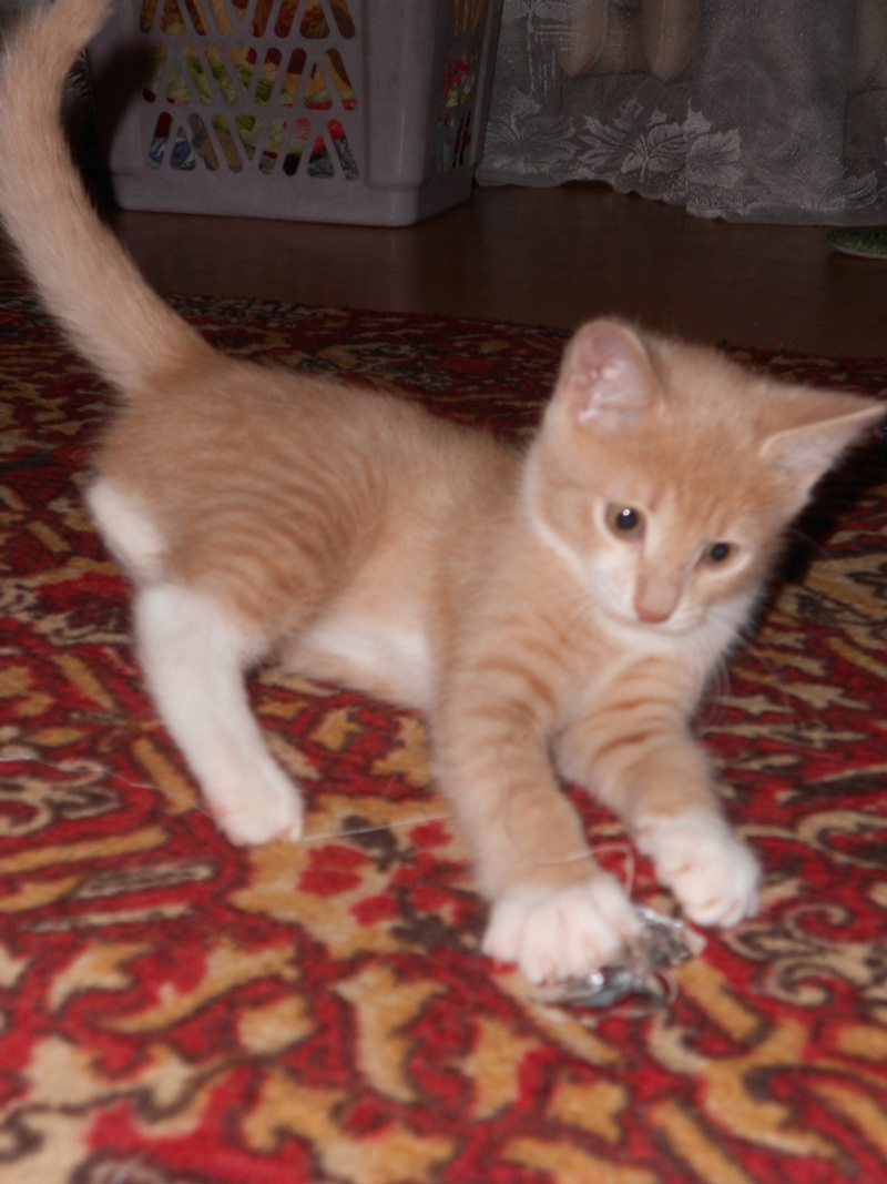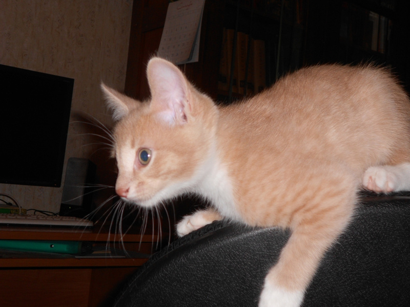 Замечательный котёнок Эдик ищет добрых хозяев. Родился у нашей кошки 1 июля. Характеристики: цвет рыжий (скорее персиковый) с белыми лапками, характер общительный и любознательный, постоянно изумлённый взгляд. Навыки: ест влажный и сухой корм из блюдца, ходит в лоток, громко мурлычет, бегает и играет. Отдадим в заботливые руки вместе с приданым (лоток, игрушка, подушка).