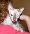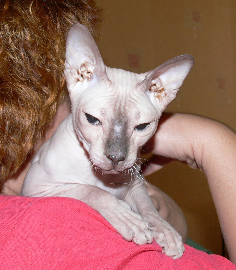 Доночке примерно 2-4 года, она очень умная девочка, с лотком у нее все отлично, нет промахов. Очень игривая кошка и ласковая, но от избытка чувств может прикусить, не сильно. Кушает сухой корм.