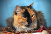 У них случилось большое горе, умерла любимая хозяйка и наследникам они оказались не нужны. И кошечки оказались в спартанской обстановке городского приюта среди множества кошек. Они очень ласковые, домашние кошки и им очень тяжело в новой для них обстановке без привычной ласки и внимания. Трехцветную зовут Полина, ей один год. Голубая - Тося, ей три года. Обе девицы простерилизованы и привиты, здоровы, им повезло – они не скитались по улицам.