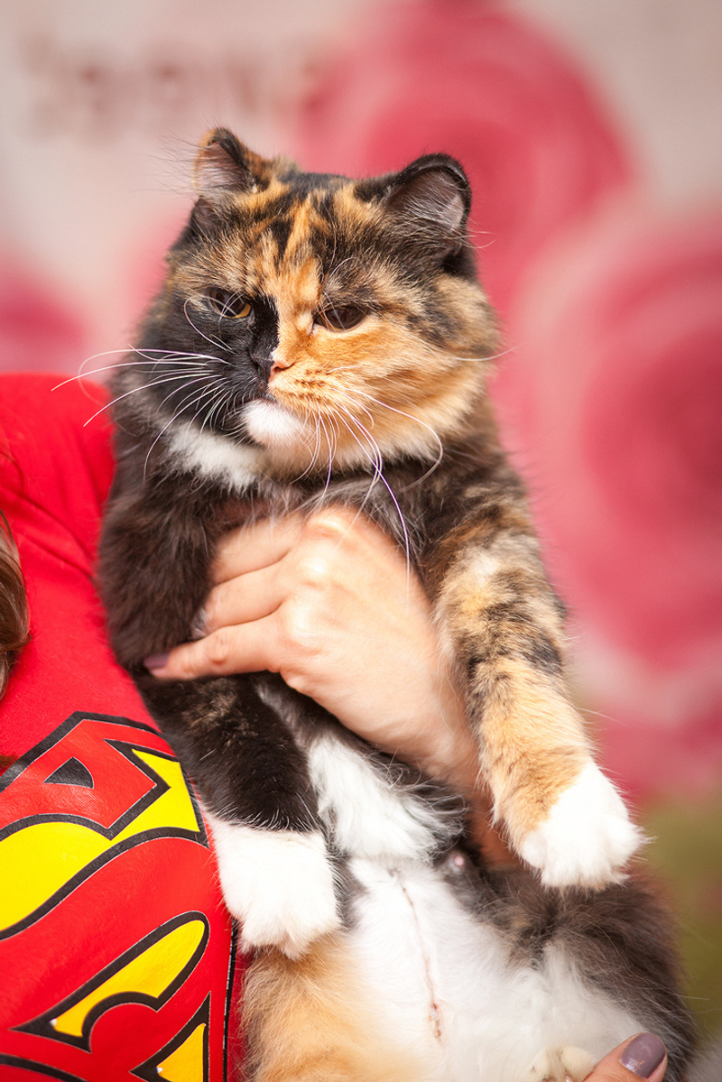 Мне кажется в ее предках есть персы, и ее ушки и хвостик только придают ей шарма. Она очень изящная и грациозная, с милым и нежным характером.