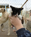 И у меня нет красивых пиарных фото с бантиками, я немного грязный бродяга с ободранным носом, но в моей груди бьется огромное сердечко, которое обещает очень любить свою семью. Еще я очень храбрый и не боюсь этих огромных собак! И почему их люди боятся? ))На самом деле ребенок живет сейчас в кинологическом центре и часто получает по своему любопытному носу, о чем свидетельствует этот самый нос на фото