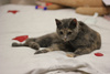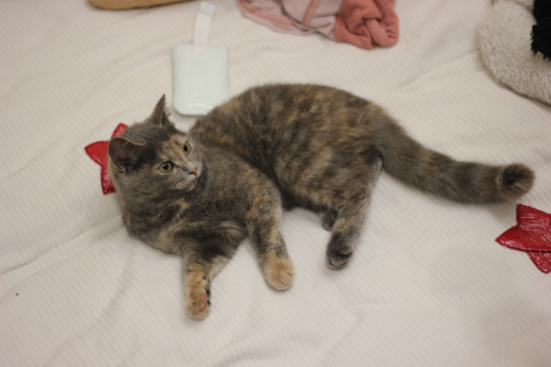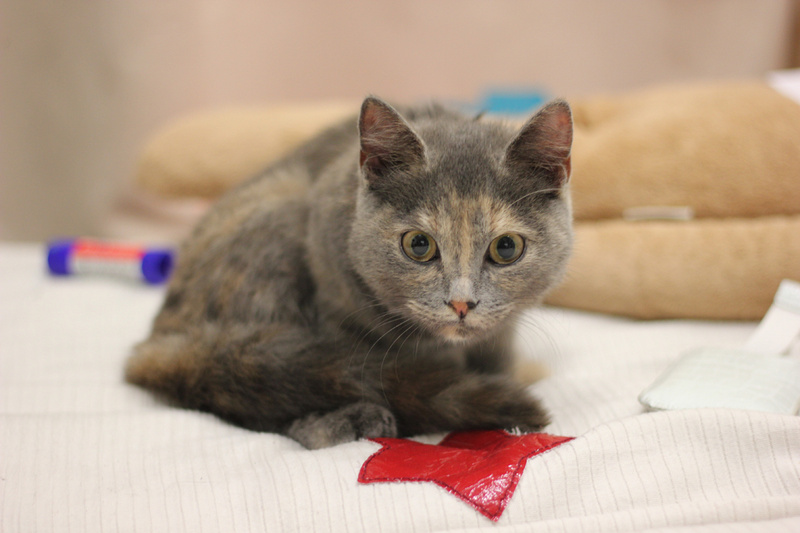 Нашли кошку в районе Речного вокзала (набережная), на вид 2 месяца. Котенок здоровый, видно, что домашний. Ласковая, любит купаться и урчит, как трактор. Дома оставить не вариант - моя домашняя кошка ее не приняла, дерутся.