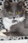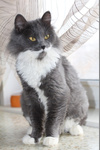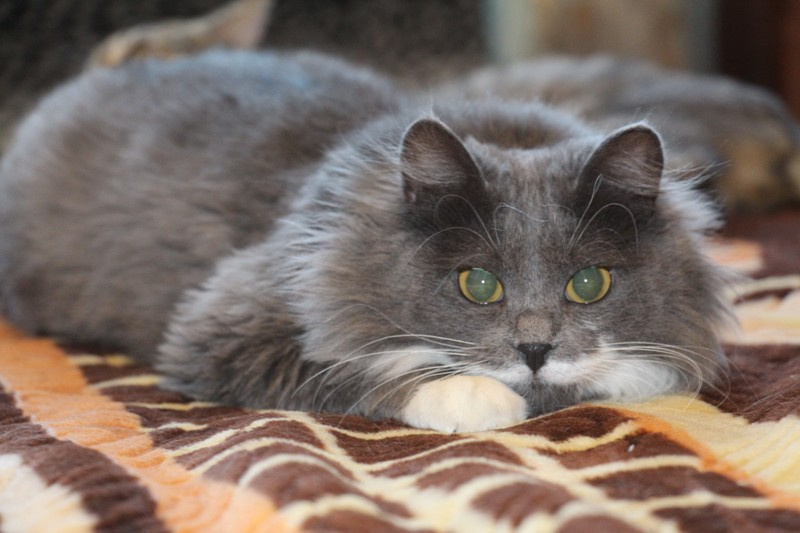 Кушает сухой корм, но и от лакомства не отказывается. По характеру очень спокойная и ласковая, с другими кошками особо дружить не желает, ей больше интересна дружба с человеком. Любит нежится на теплой лежанке или диване, обниматься, всяческие приятности тоже уважает.