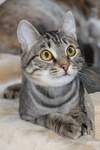 Очень ласковый, игривый, любит общение и внимание к своей персоне. Очень уважает всяческие ласки, почесывания за ушком и шею.