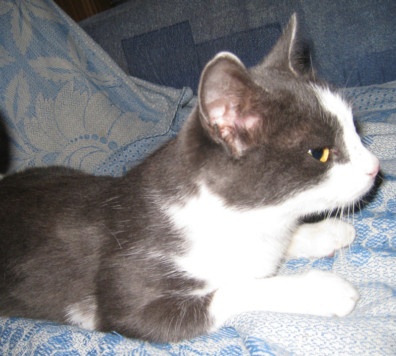 Сейчас находится на передерждке и ждет своих хозяев - с мягким диваном и мисочками, полными вкусной еды. Сидит долгими вечерами и мурчит песенки про счастливую и сытую жизнь.